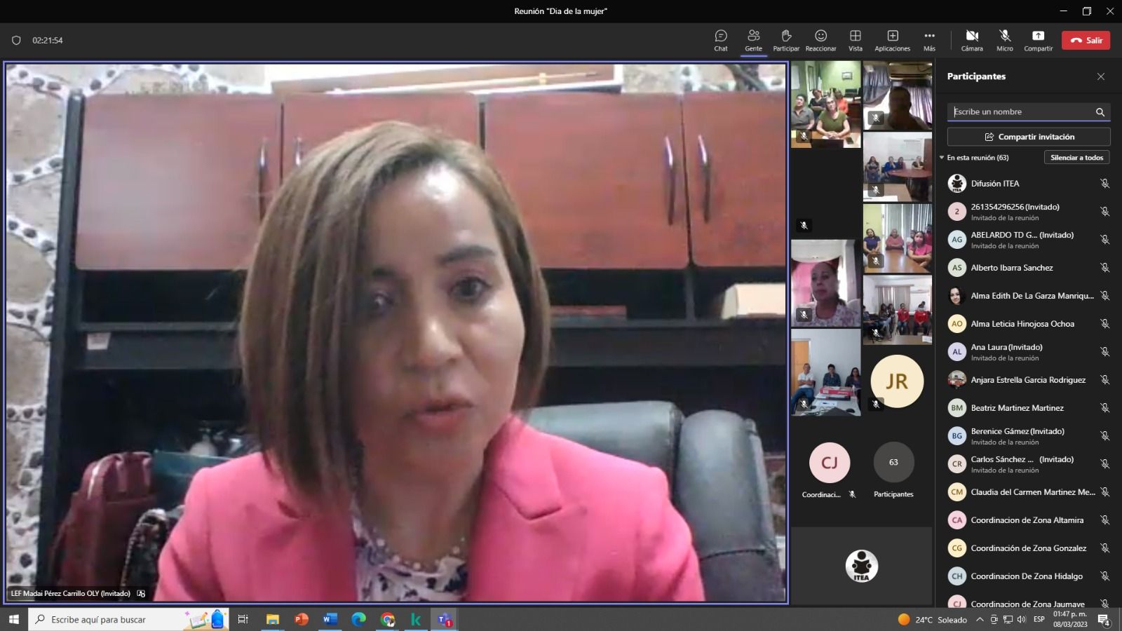 Este 8 de marzo la Directora General del ITEA, Gloria Guadalupe González González, la invita para que comparta su experiencia de éxito a los trabajadores y mujeres trabajadoras que forman parte en el Instituto.