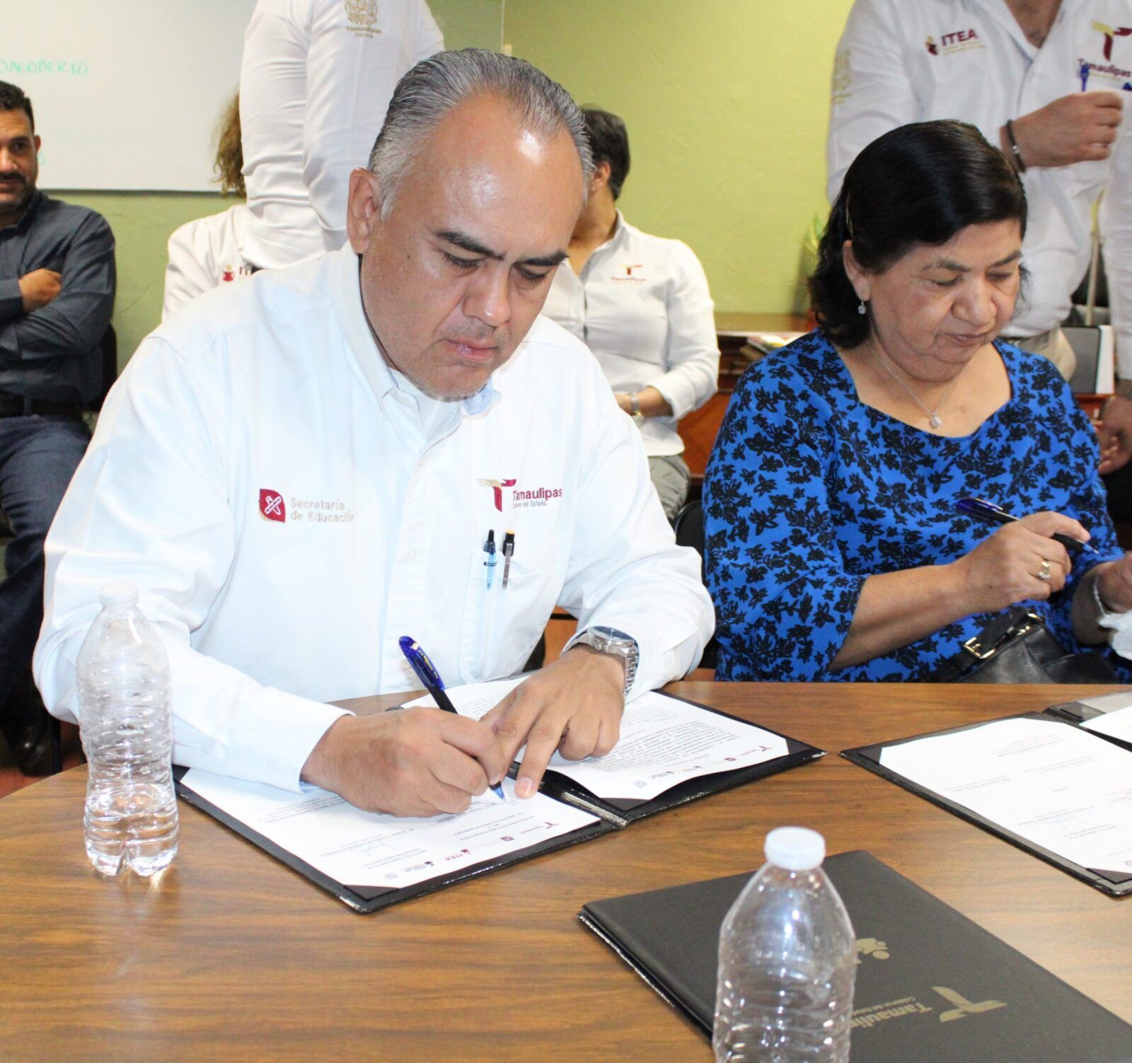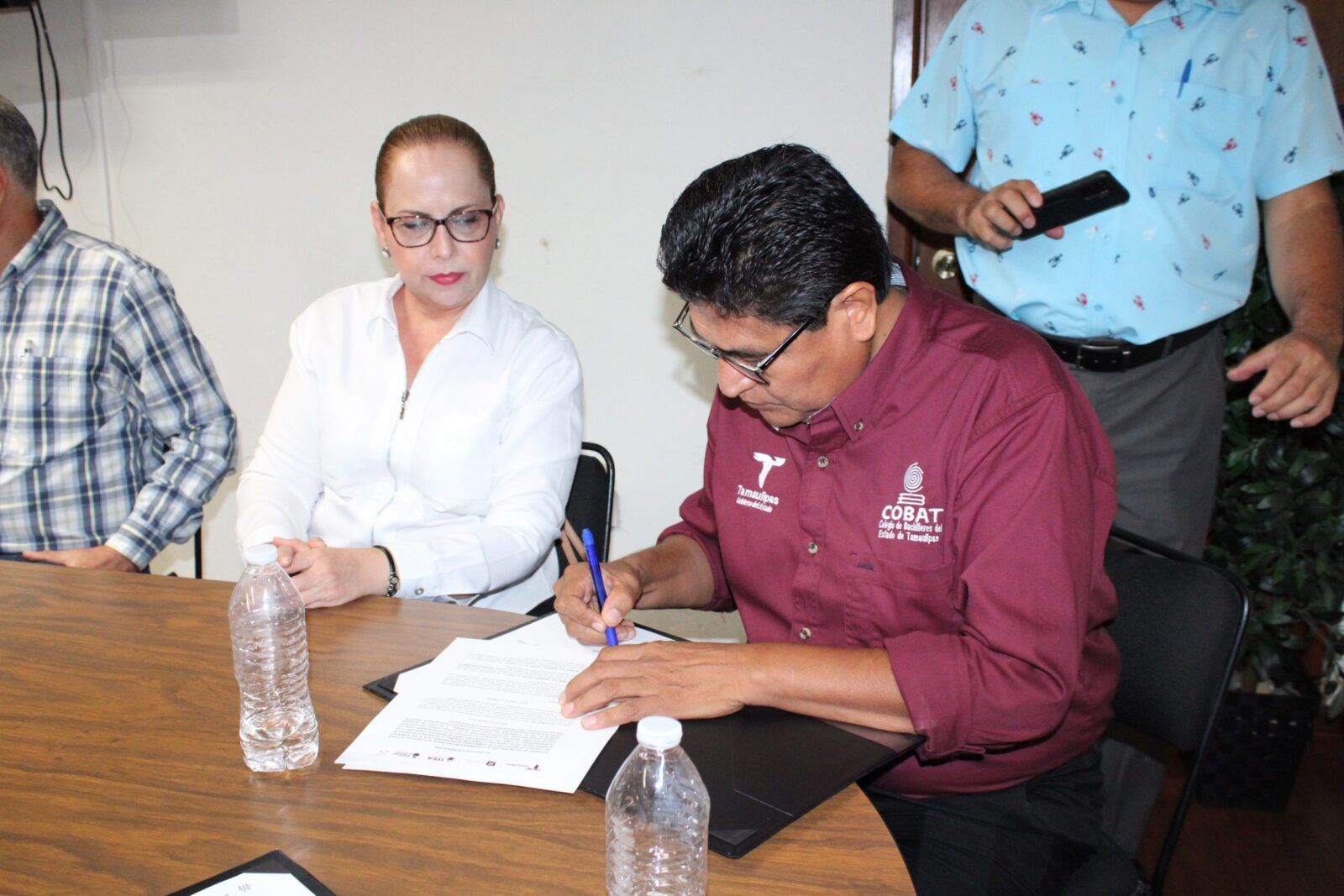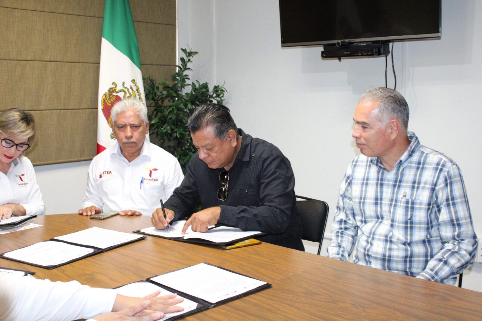 Firmaron el Acuerdo de Colaboración, el Director General del Colegio de Bachilleres del Estado de Tamaulipas, Rubén Ely Ramírez Rivas; el Director del Plantel COBAT 05 Victoria, José Ramón Tovar del Valle; la Directora de la Preparatoria Federalizada Núm. 1 “Ing. Marte R. Gómez”, Ma. Del Carmen Sandoval Navarro; la Directora de la Preparatoria Federalizada Núm. 2 “Lic. Aniceto Villanueva Martínez”, Norma Irene Morales González; el Director de la Preparatoria Federalizada Núm. 3 “Carlos Adrián Avilés Bortolussi”, Carlos Castillo Camacho; ante la presencia de autoridades como la Responsable de Servicio Social de Educación Media Superior y Superior, Mayra Pomares Oviedo; Claudia Estela Torres, Auxiliar en el Área de Media Superior, directores de área del ITEA; Coordinador de Programas Estratégicos y jefe del Departamento Jurídico.