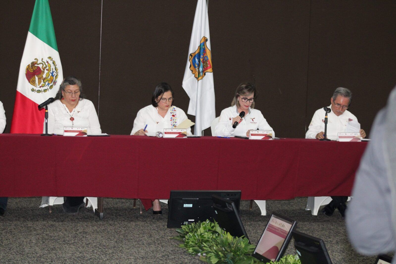 En el acto protocolario se contó como testigos de honor con la presencia de la secretaria de Educación de Tamaulipas, Lucía Aimé Castillo Pastor; la directora general del Instituto Nacional para la Educación de los Adultos (INEA), Teresa Guadalupe Reyes Sahagún; el Rector de la Universidad Autónoma de Tamaulipas, Guillermo Mendoza Cavazos y del Subsecretario de Educación Media Superior y Superior, Guadalupe Acosta Villarreal.