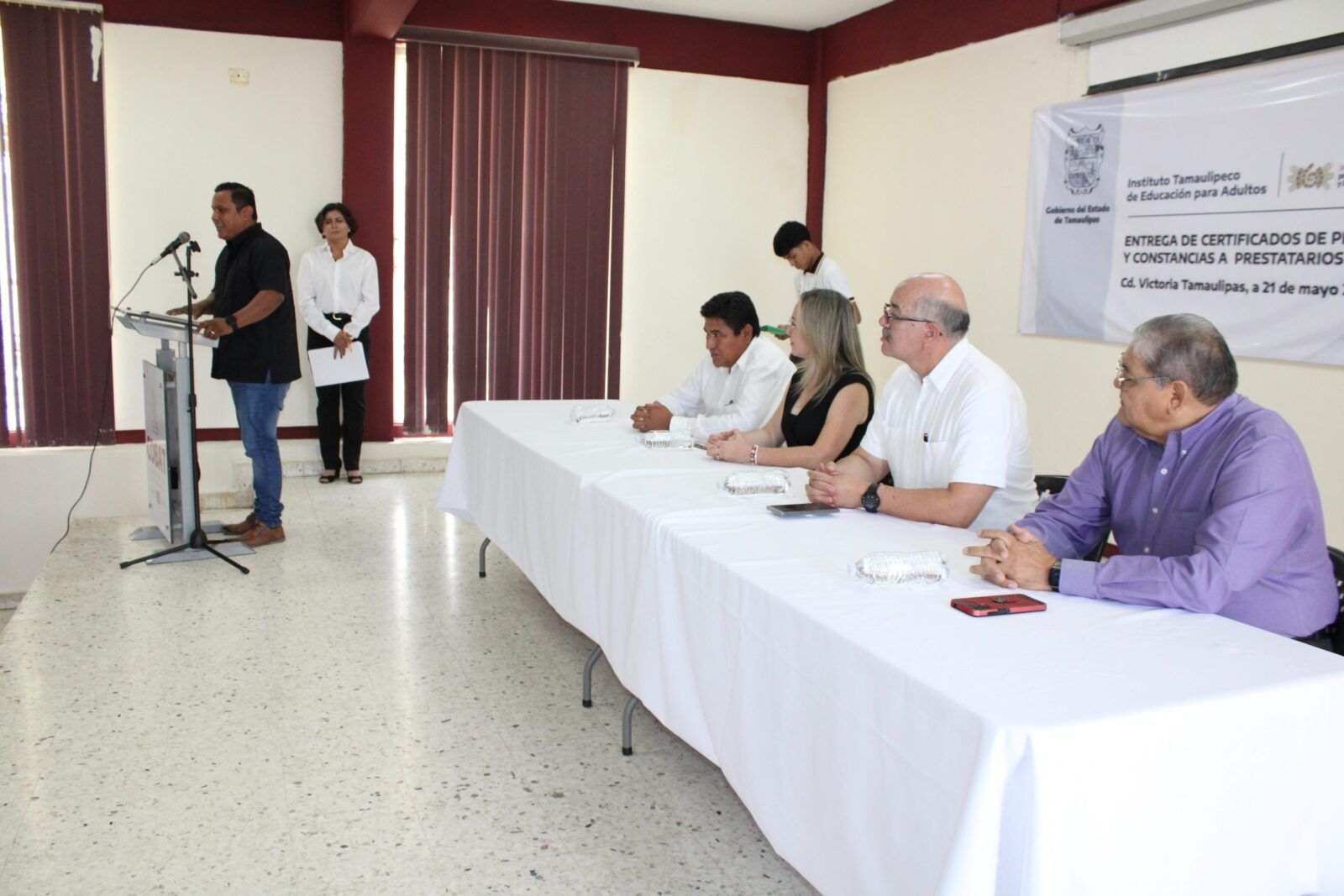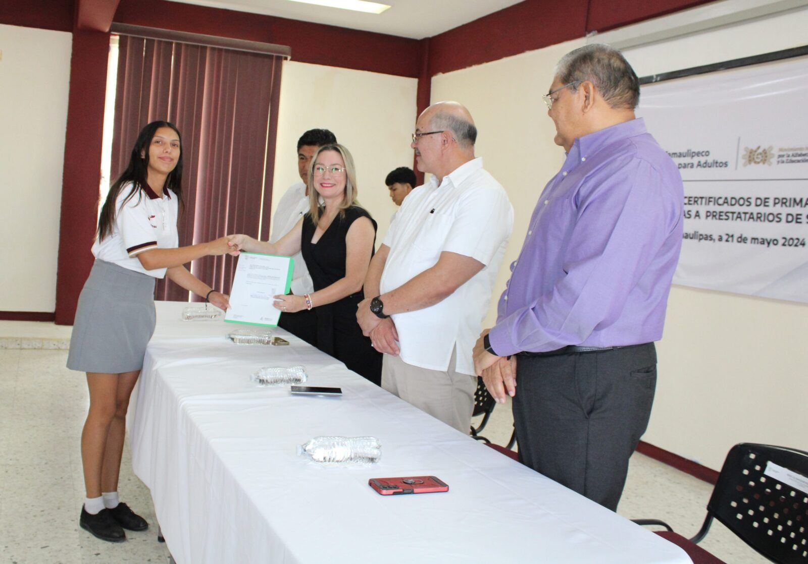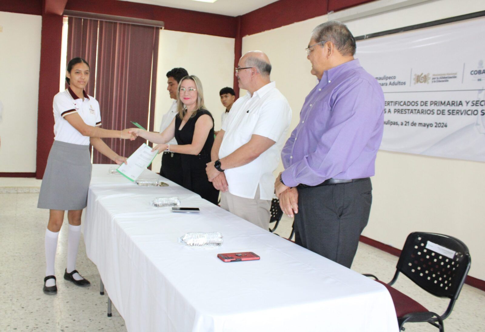 En el marco del Movimiento Nacional por la Alfabetización y la Educación (MONAE), el pasado 21 de mayo de 2024, el Instituto Tamaulipeco de Educación para Adultos hizo entrega siete certificados de Primaria y cuatro certificados de Secundaria; así como nueve constancias a prestatarios de servicio social, estudiantes del Colegio de Bachilleres del Estado de Tamaulipas (COBAT) Plantel 05 de Ciudad Victoria.