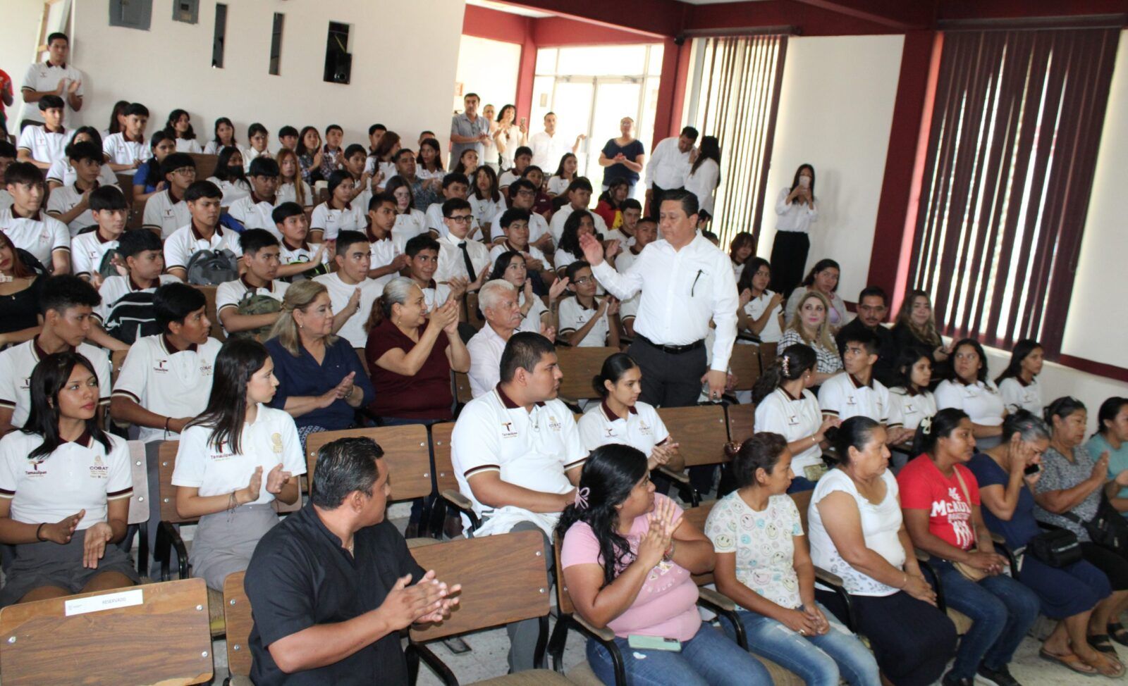 “Es momento de júbilo, es momento de sentirse felices porque no solamente hoy llegan ellas y ellos a cumplir un deseo, un sueño que quizá por alguna razón sencillamente compleja, en sus hogares no pudieron atender o lograr en el momento en el que normativamente se establece que debemos aprender a leer y a escribir y cumplir con la educación Primaria o Secundaria, pero hay algo muy importante, ellos lograron alcanzar una meta porque no se dieron por vencidos, encontraron nuevamente la oportunidad como bien lo dijo María de Jesús y la encontraron acompañadas de seres humanos grandiosos, como cada uno de estos jóvenes que decididamente se incorporaron a un proceso de formación y se dejaron acompañar por expertos, por Técnicos, por maestras y maestros que también han recibido su reconocimiento y en equipo como una comunidad maravillosa, muchas personas les acompañamos en este logro y debemos sentirnos contentos jóvenes, porque con acciones como estas estamos recuperando muchos elementos que nos hacen ser humanos, que nos hacen ser parte de una comunidad que nos hacen ejercer valores que hemos recibido en nuestras casas, en algún espacio de fortalecimiento espiritual o en la escuela y yo celebro que el ITEA haya hecho un esfuerzo, por pasar de un escenario cuando en 2022 cuando recién llega el Gobernador, Dr. Américo Villarreal a presidir el gobierno de Tamaulipas y había un solo estudiante en este movimiento inscrito y hoy estamos haciendo entrega de cientos de certificados alrededor de todo el territorio, gracias a que hay más de cientos jóvenes como ustedes que nos están acompañando, poniendo su talento, su tiempo, poniendo su corazón para ayudar a otra persona a ver la posibilidad que te da el entender la letras, el poder leer un texto, comprender un documento, tener herramientas para una vida mejor; todo esto es una realidad porque su servicio social se significó en la persona que tienen al lado, ustedes les han encendido de nuevo la luz al acercarlos a la educación, gracias todos los que se han involucrado, por apostarle al servicio social, sumándose al MONAE que da oportunidades a muchas personas y están dando ejemplo, esto es humanismo, esto es la transformación”