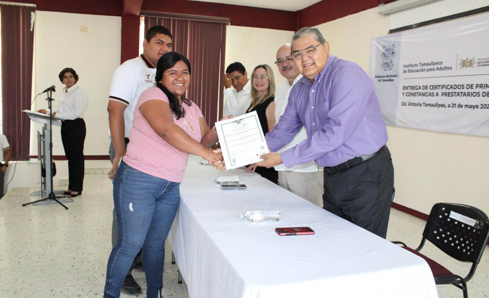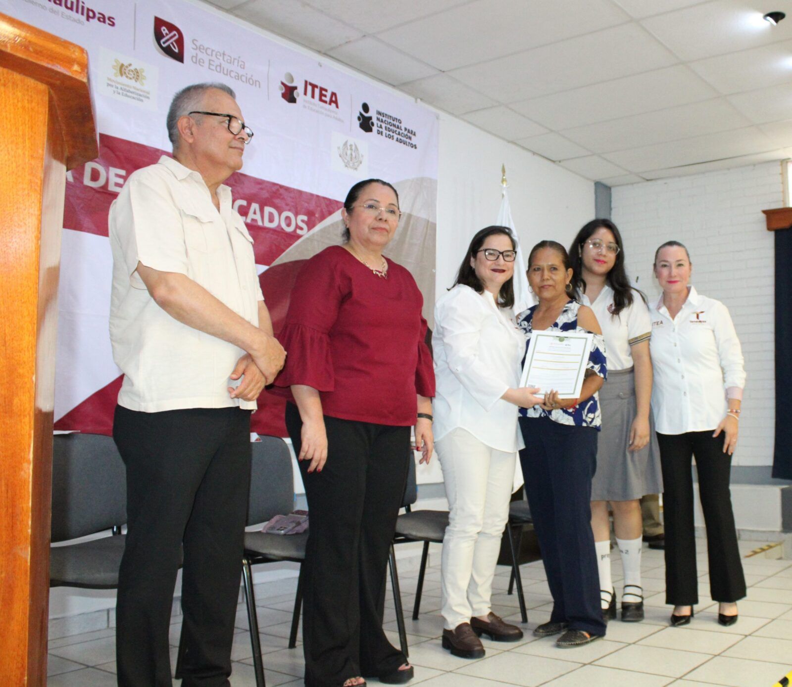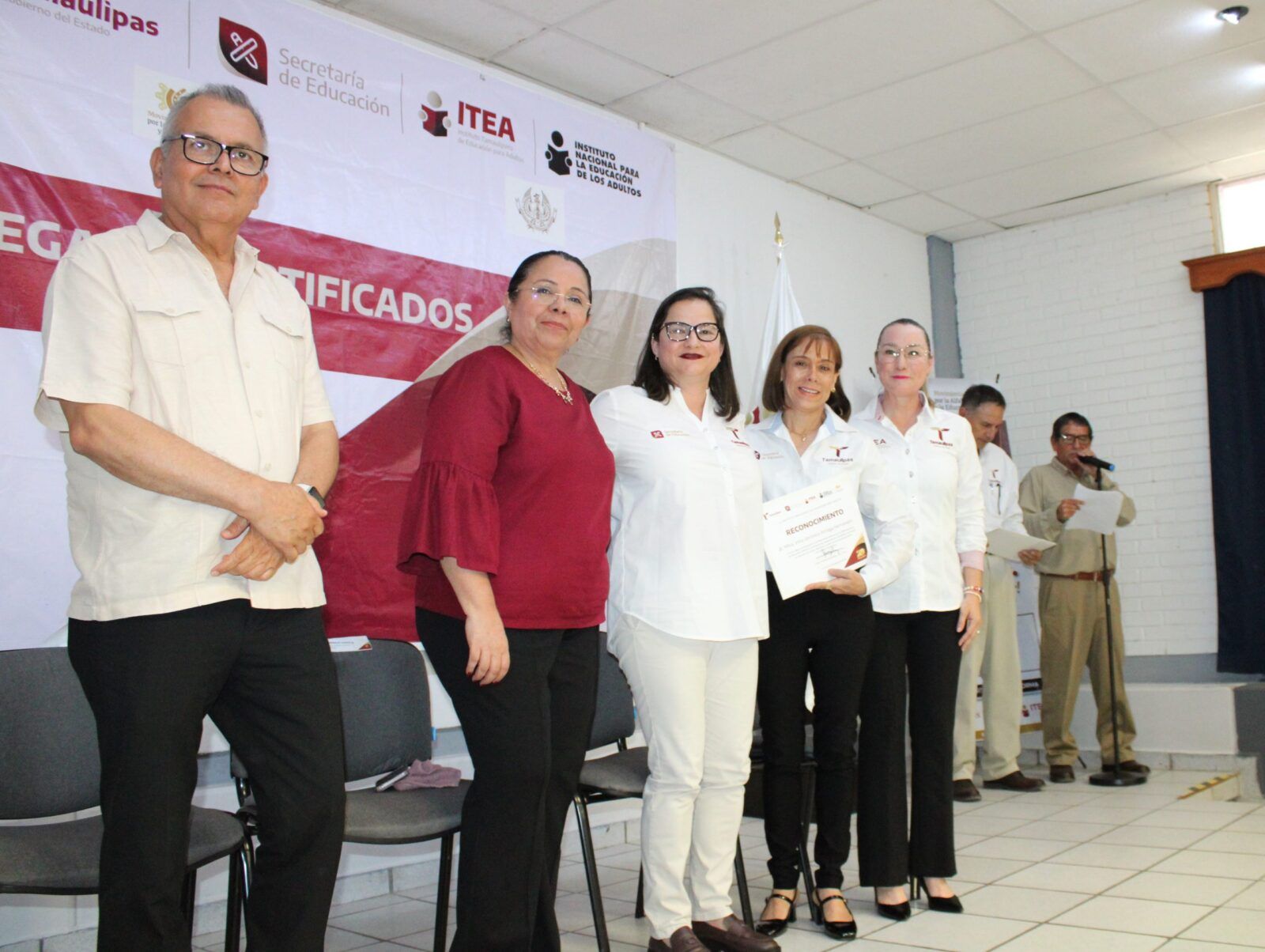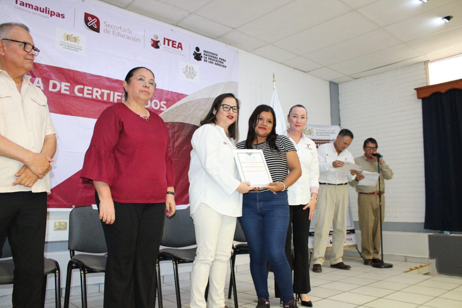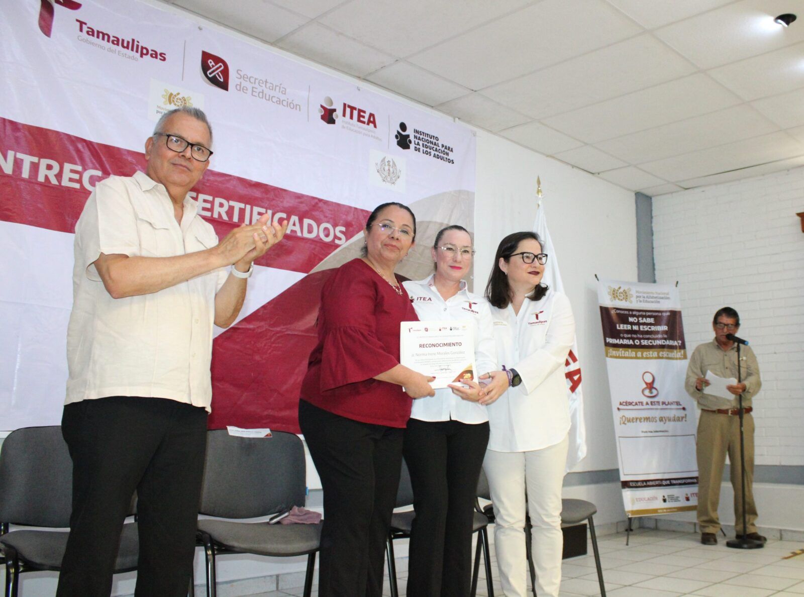 Ante la presencia de la Secretaria de Educación en Tamaulipas, Lucía Aimé Castillo Pastor. – reconoció el esfuerzo y dedicación de alumnos y alumnas que tuvieron la experiencia de poder ayudar a quienes por alguna razón no habían certificado su educación básica, por lo que en sus palabras mencionó: