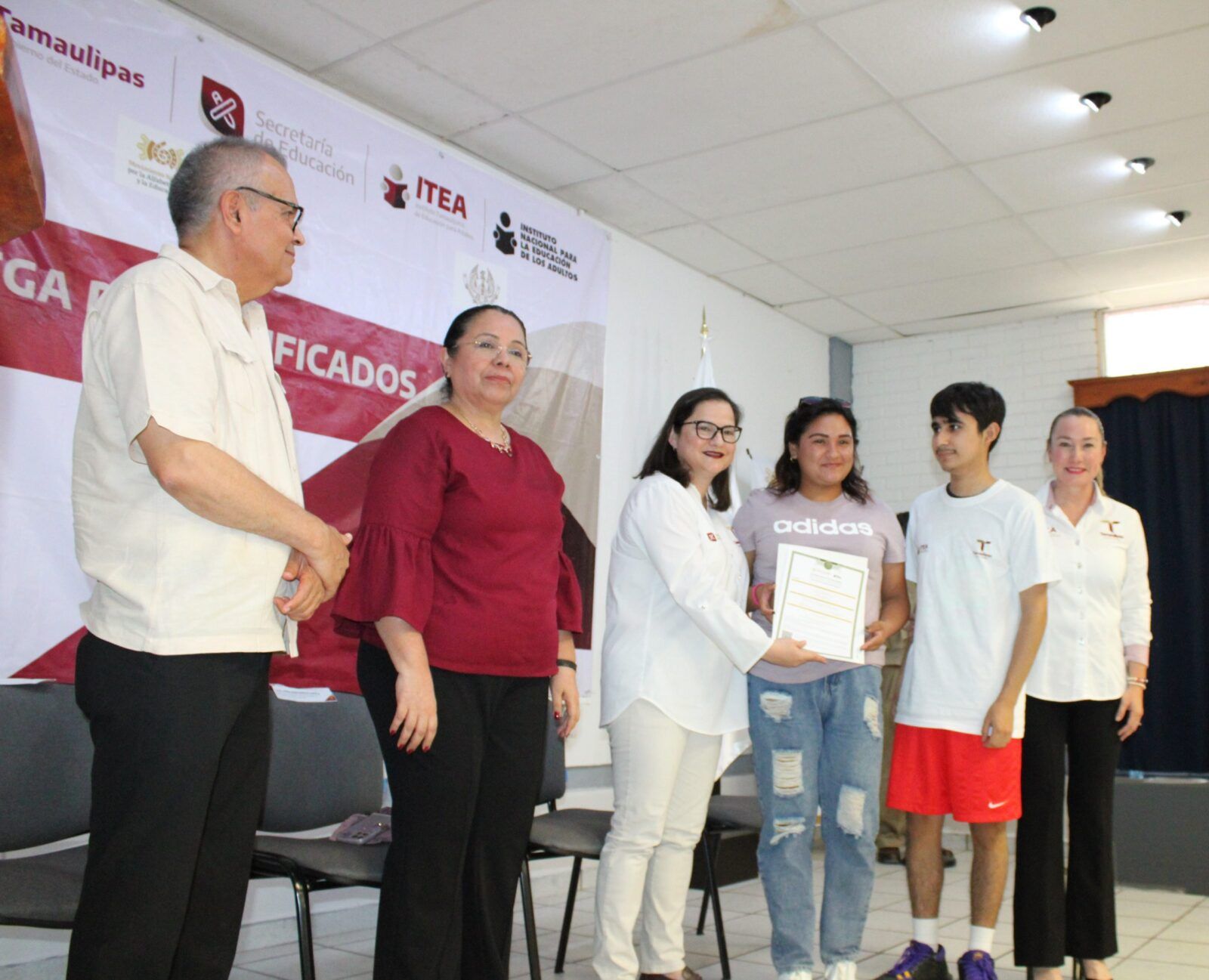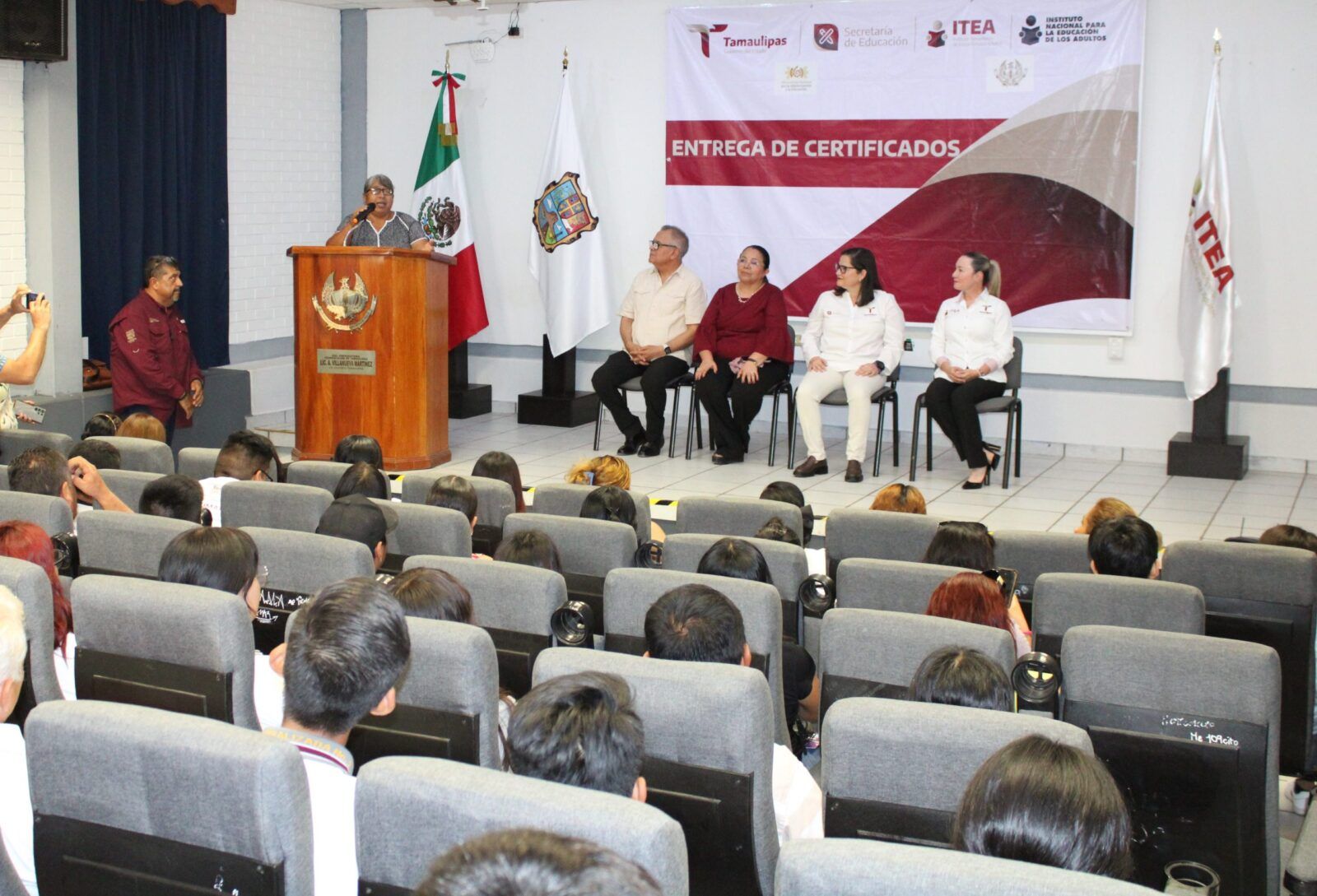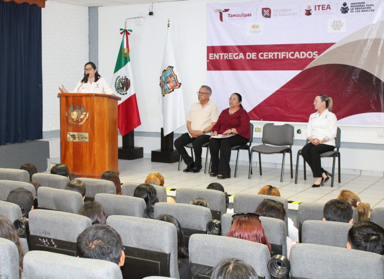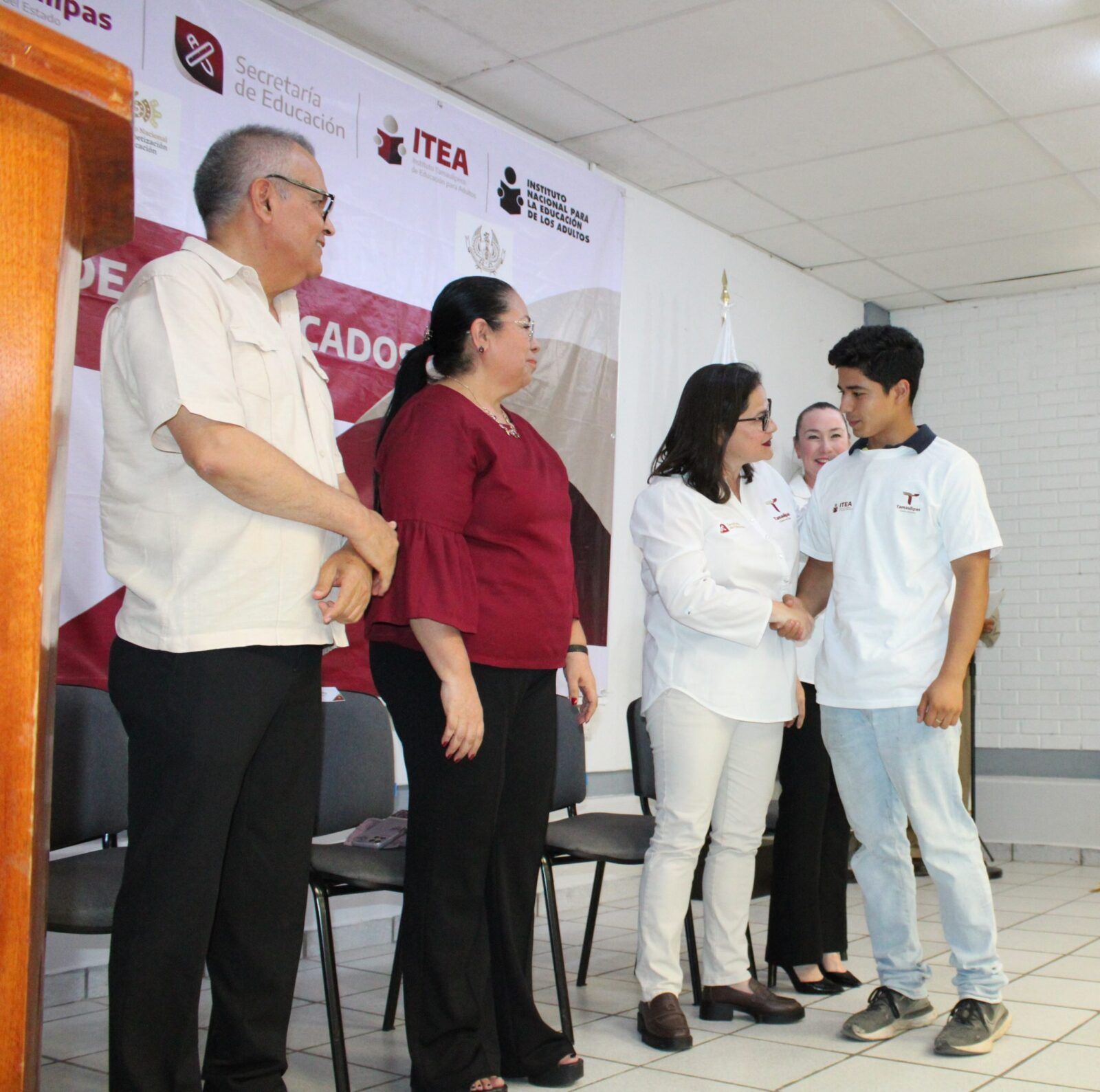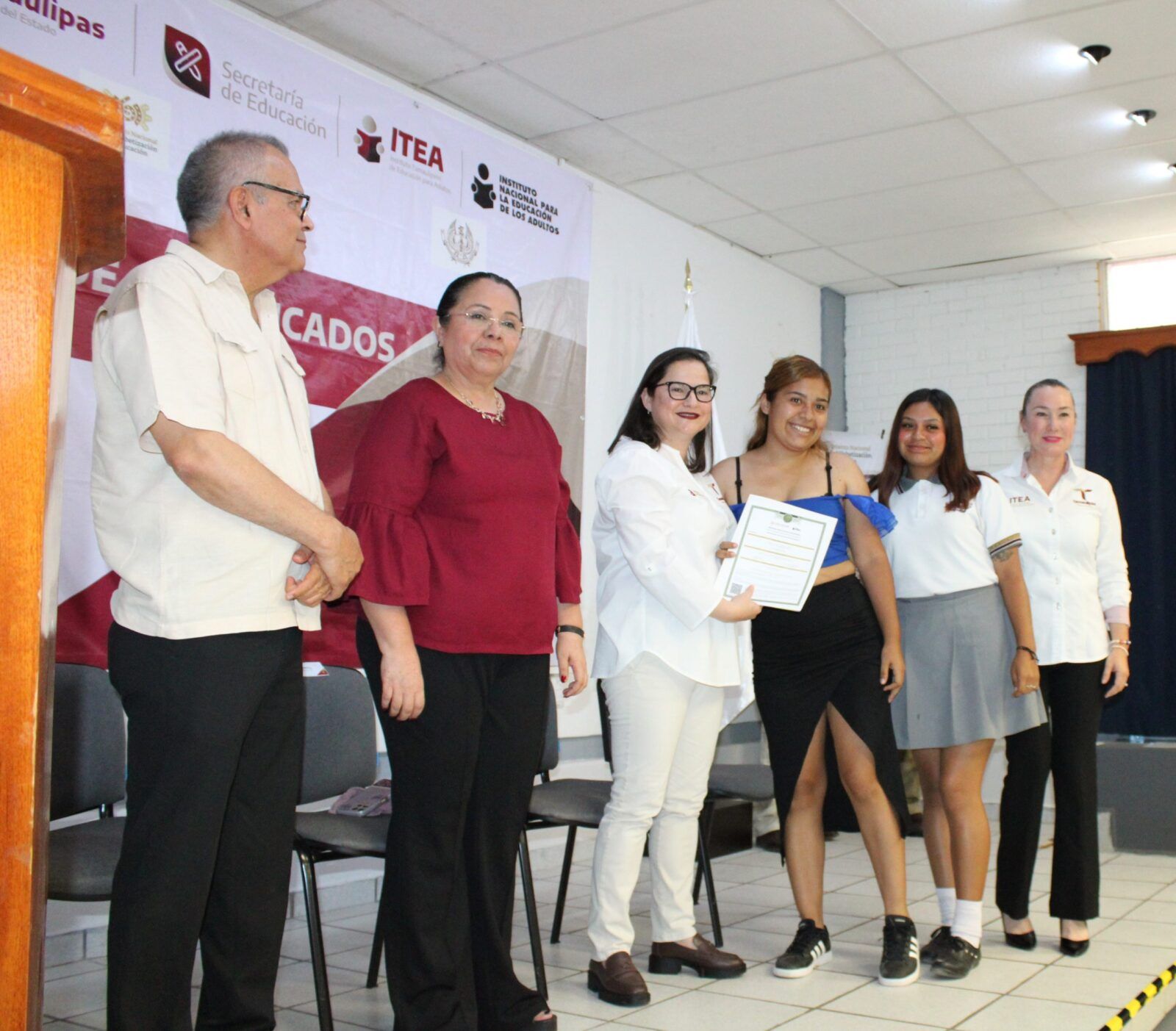 Ante la presencia de la Secretaria de Educación en Tamaulipas, Lucía Aimé Castillo Pastor. – reconoció el esfuerzo y dedicación de alumnos y alumnas que tuvieron la experiencia de poder ayudar a quienes por alguna razón no habían certificado su educación básica, por lo que en sus palabras mencionó: