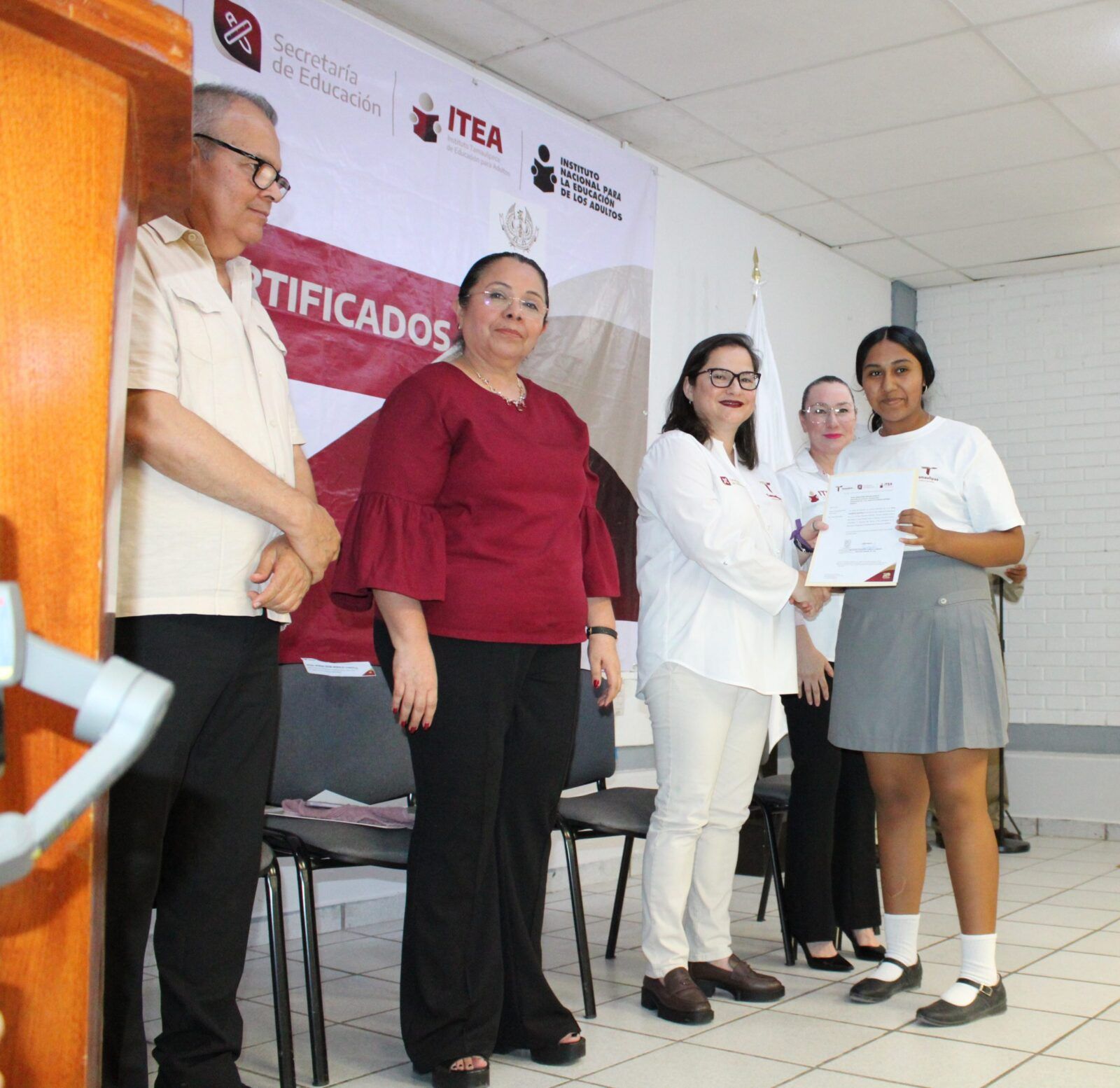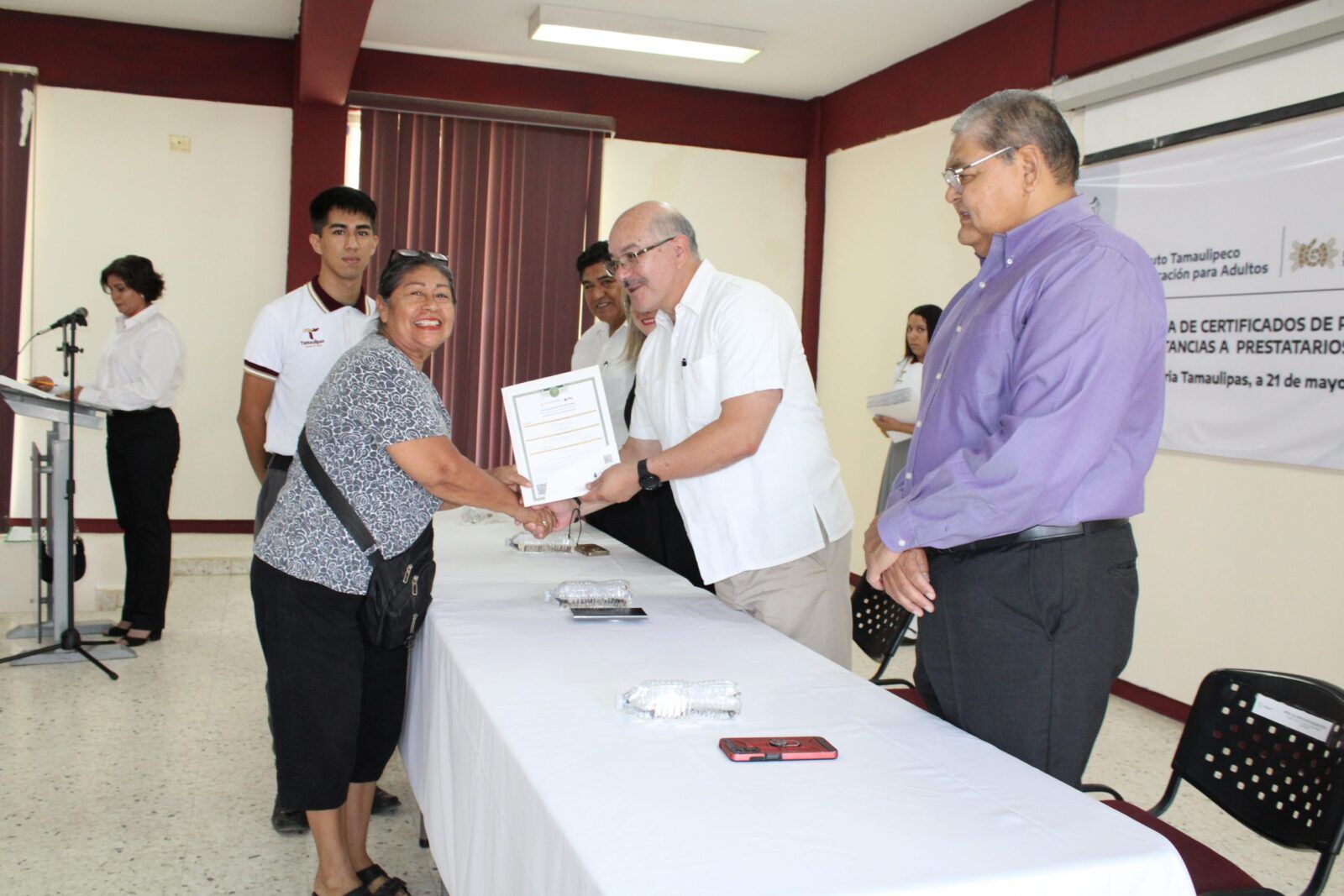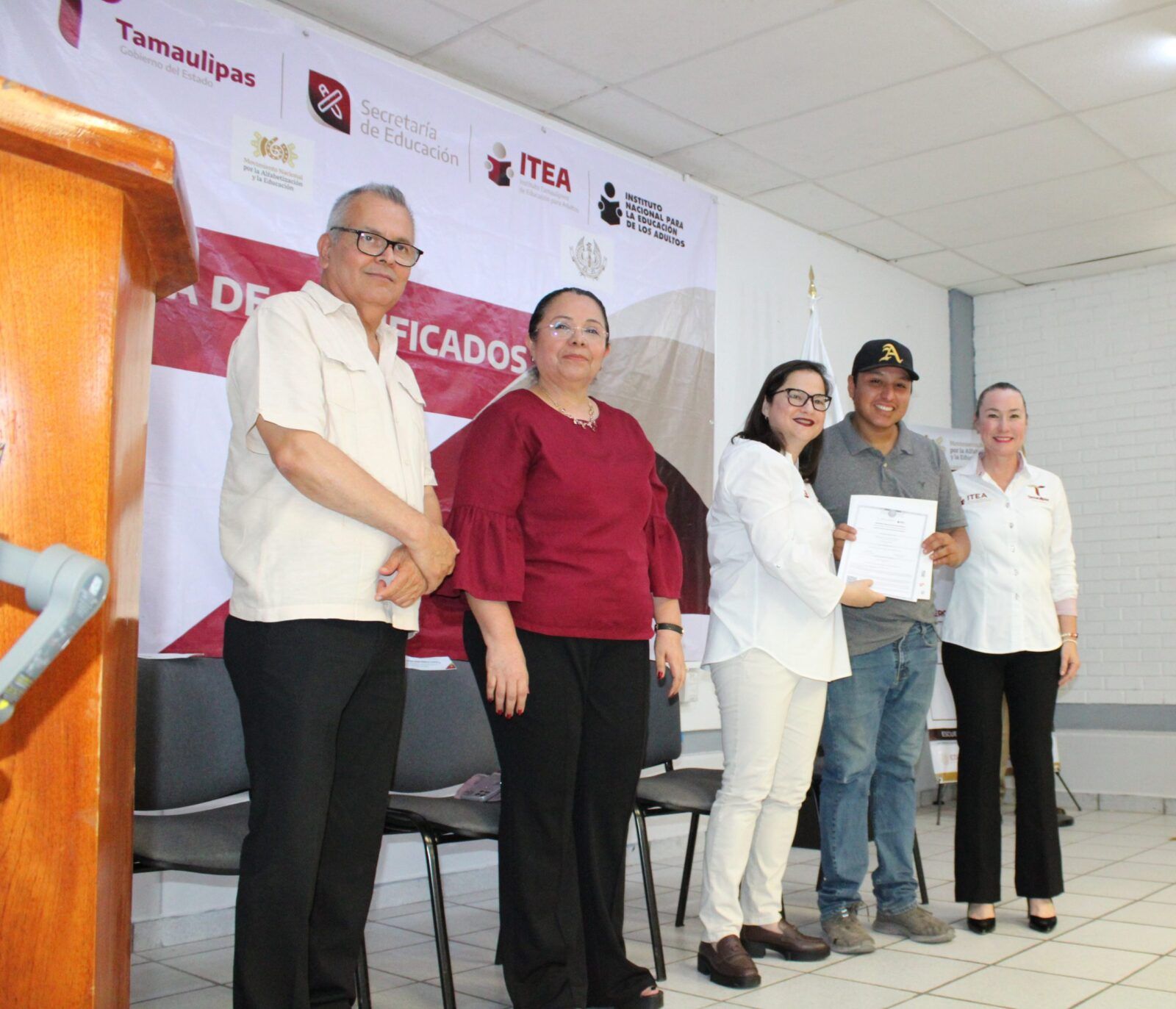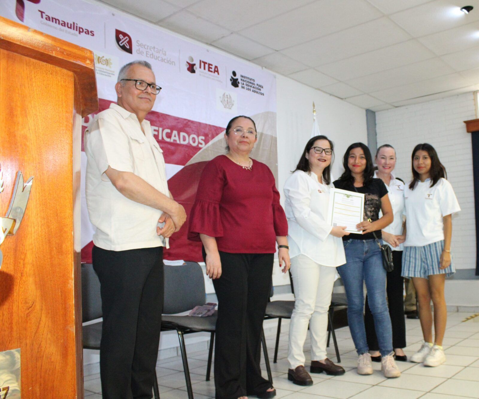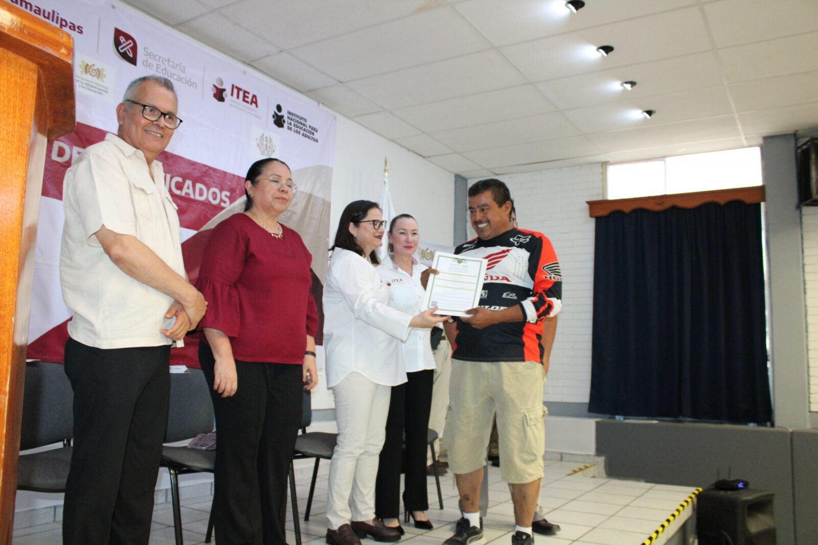 Ante la presencia de la Secretaria de Educación en Tamaulipas, Lucía Aimé Castillo Pastor. – reconoció el esfuerzo y dedicación de alumnos y alumnas que tuvieron la experiencia de poder ayudar a quienes por alguna razón no habían certificado su educación básica, por lo que en sus palabras mencionó:
