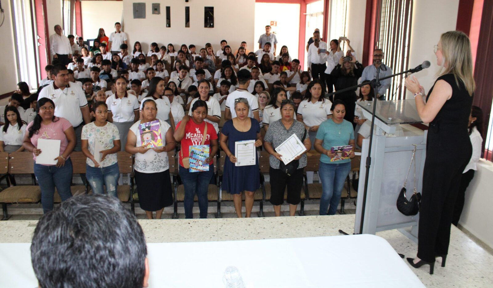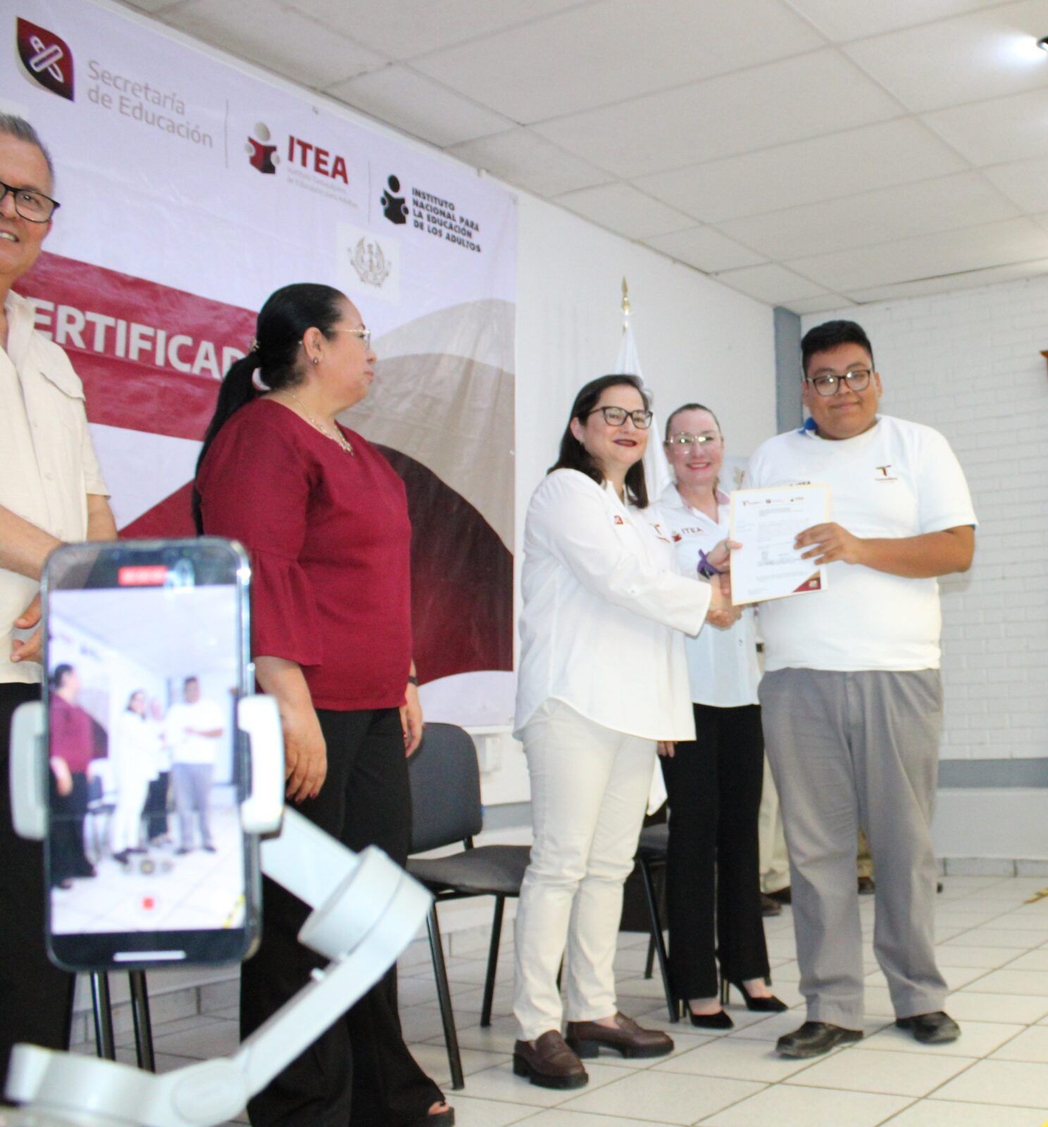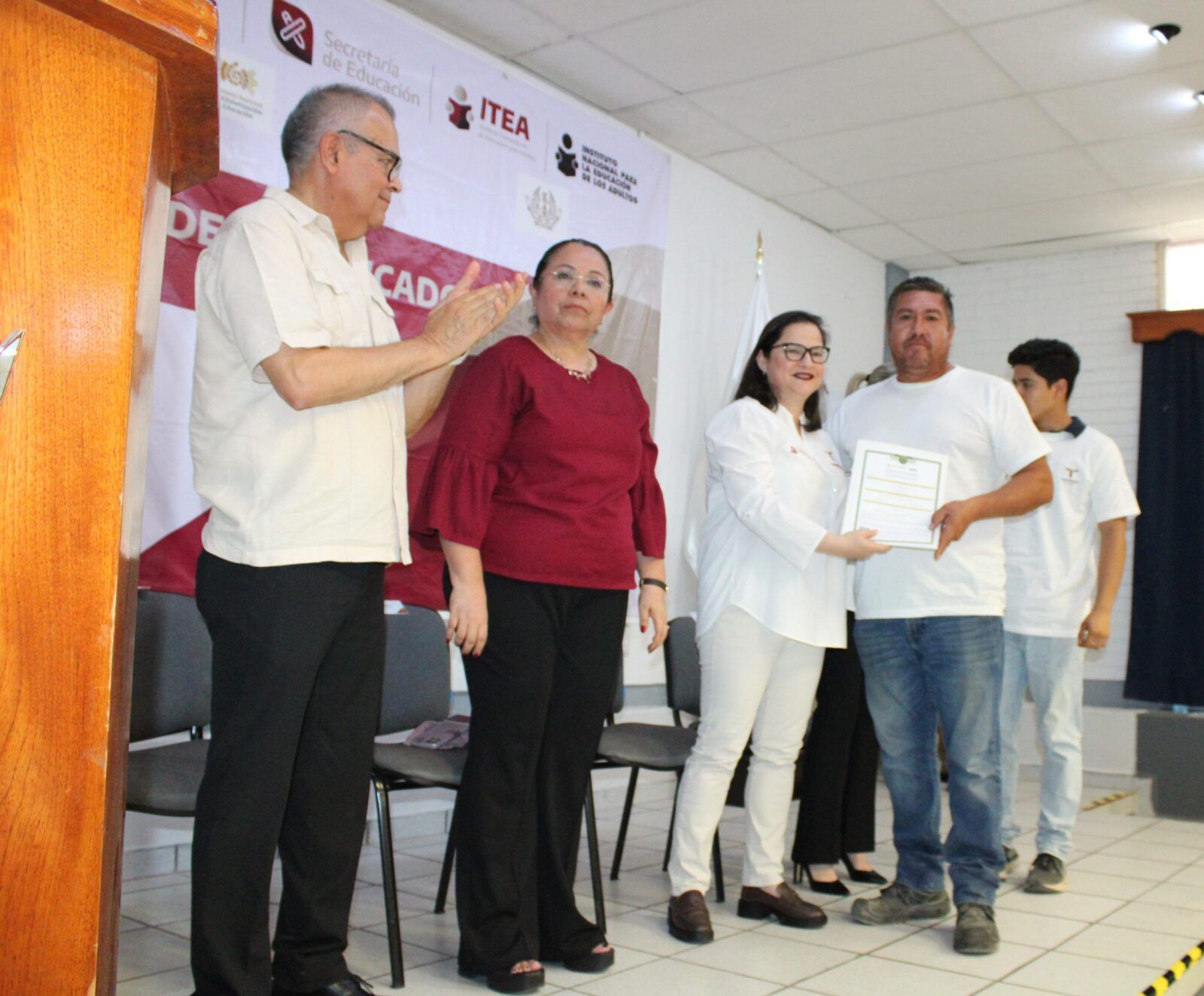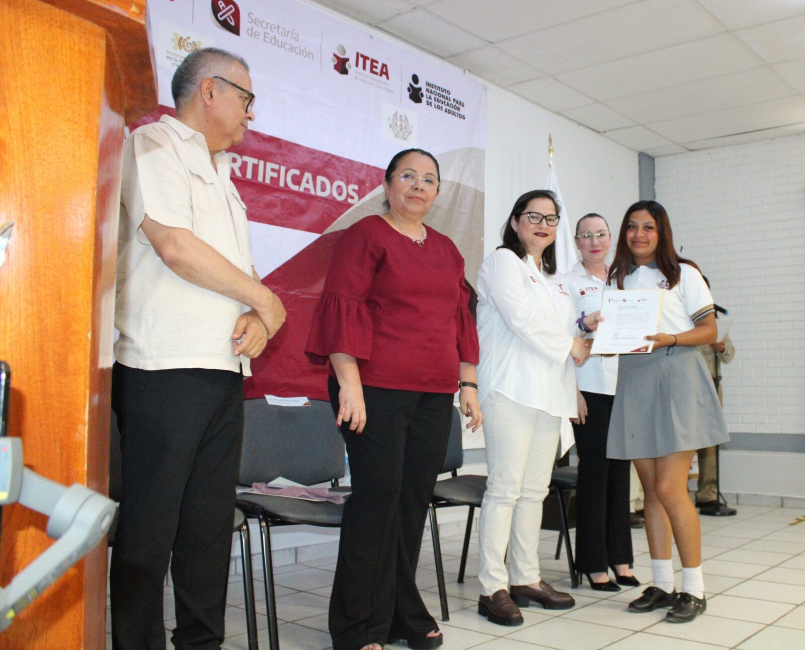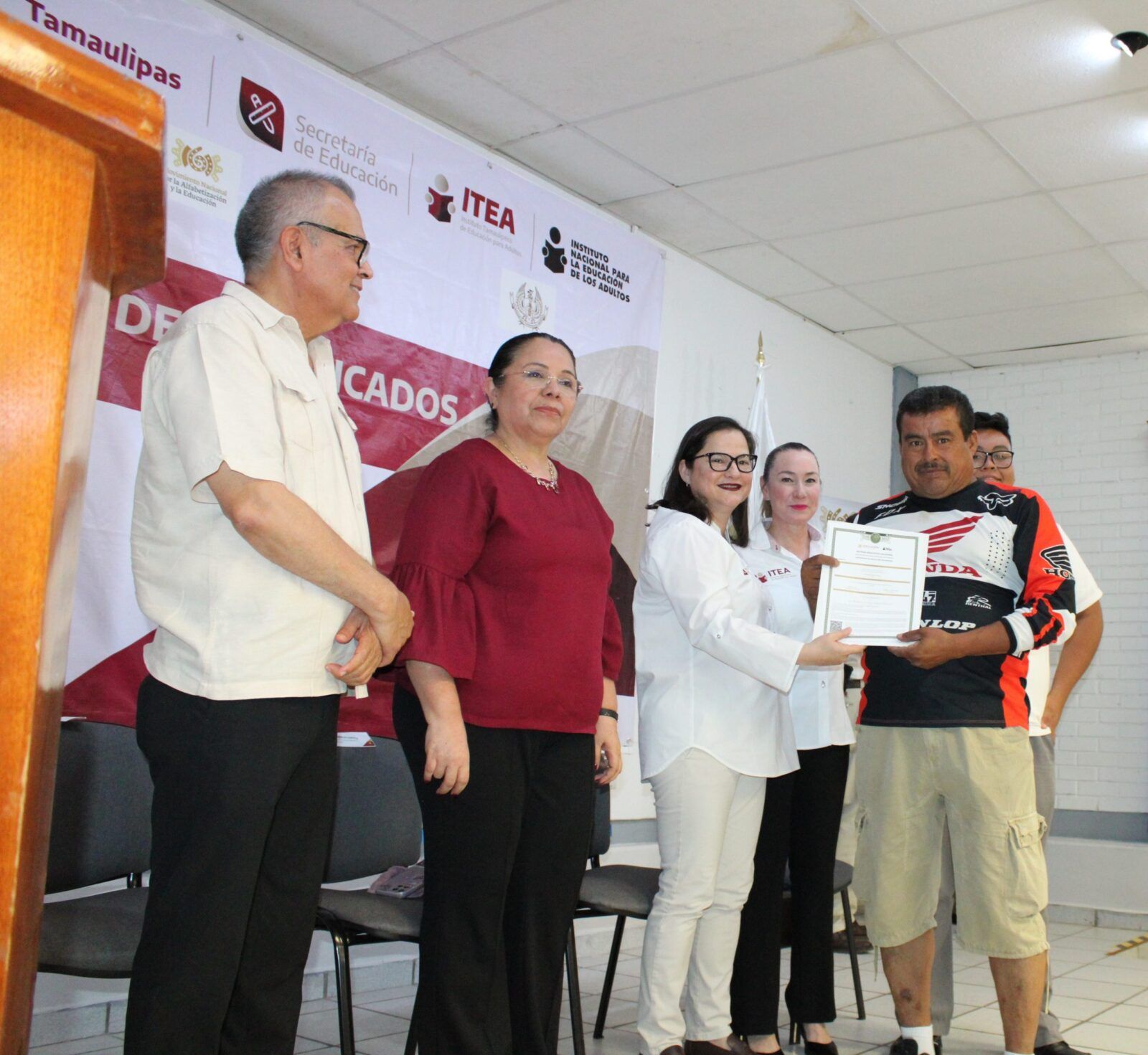 Ante la presencia de la Secretaria de Educación en Tamaulipas, Lucía Aimé Castillo Pastor. – reconoció el esfuerzo y dedicación de alumnos y alumnas que tuvieron la experiencia de poder ayudar a quienes por alguna razón no habían certificado su educación básica, por lo que en sus palabras mencionó: