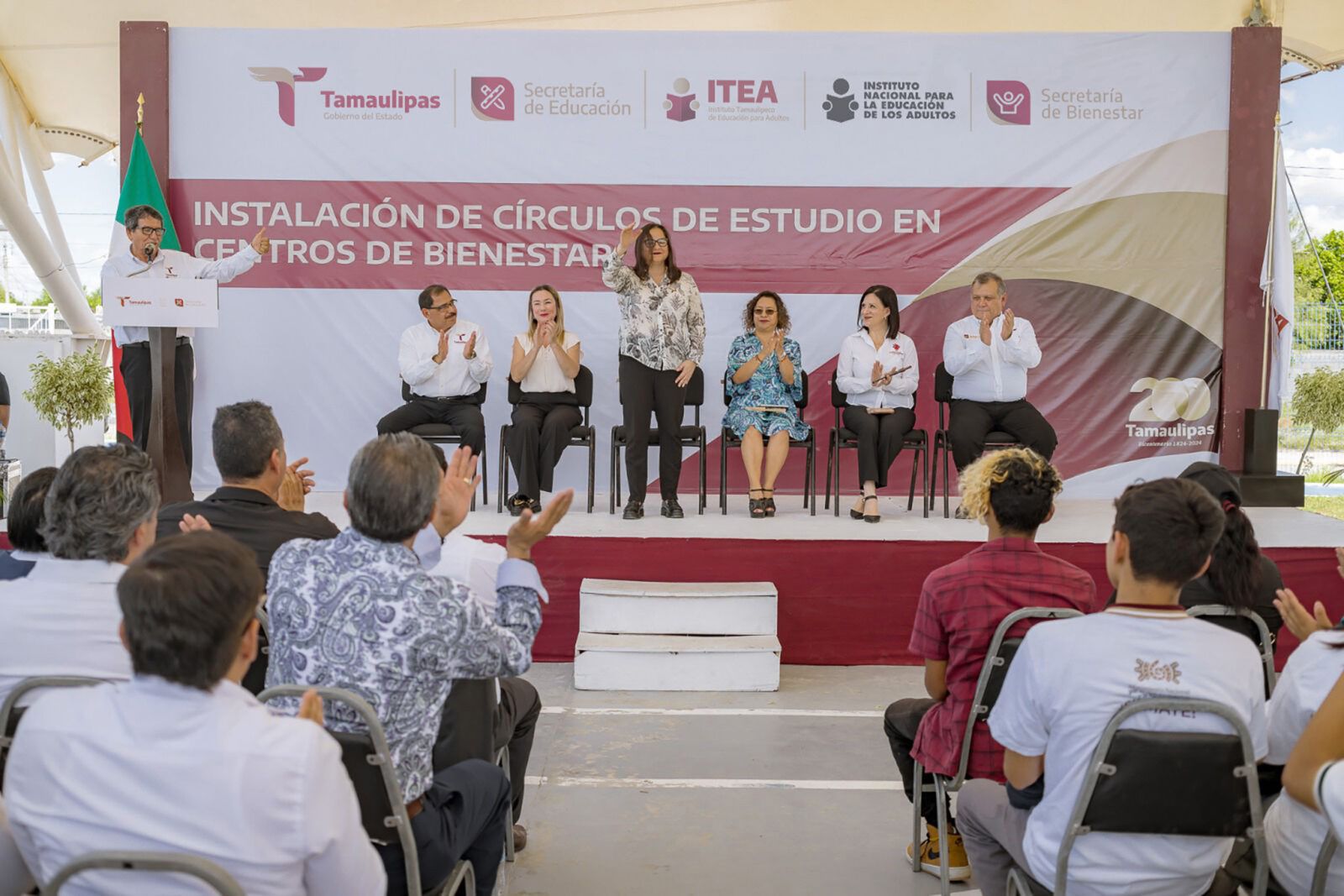 Reafirmando el compromiso que ha asumido el gobierno de Américo Villarreal Anaya de impulsar y promover una educación de excelencia, equitativa, inclusiva y humanista que contribuya a la transformación de nuestras comunidades, la secretaria de Educación de Tamaulipas, Lucía Aimé Castillo Pastor, junto a Ixchel George Hernández, directora general del Instituto Nacional de Educación para Adultos, así como la directora general del ITEA, Gloria Guadalupe González González y autoridades estatales, municipales y comunidad, se instaló el Círculo de Estudios y #PlazaComunitaria en el Centros de Bienestar “Los Presidentes”, en el municipio de Nuevo Laredo.