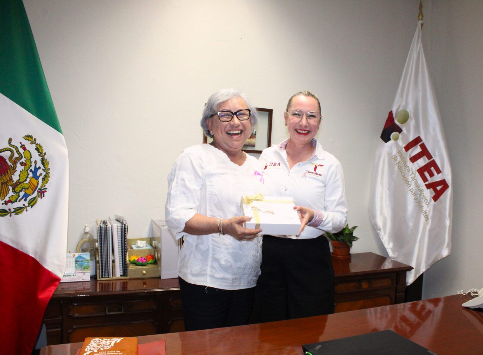 Ciudad Victoria, Tamaulipas. – este 10 de octubre, la directora general del ITEA, Gloria Guadalupe González González, se reúne con la presidenta Municipal de Aldama, Tamaulipas, María Noemí Sosa Villarreal; acompañada por su secretaria particular, Blanca M. Bedolla Guerrero.