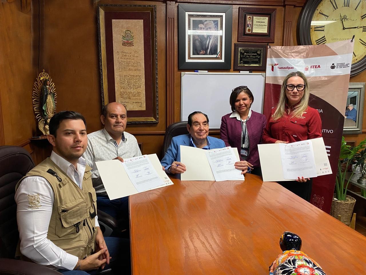 Firmaron dicho convenido la directora General del ITEA, Gloria Guadalupe González González y el secretario General del Sindicato, Jesús Mendoza Reyes