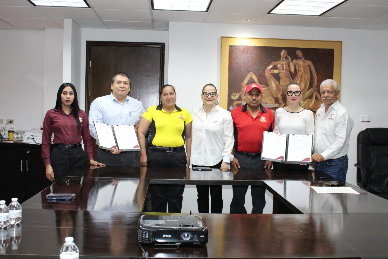 Ante la presencia de los trabajadores Blanca Verónica Carrizalez Álvarez, quien estudia la educación primaria y Pedro Cárdenas Chales, la secundaria; el enlace por parte de la empresa, Valeria Alatorre y personal directivo del ITEA y de la Secretaría de Educación.