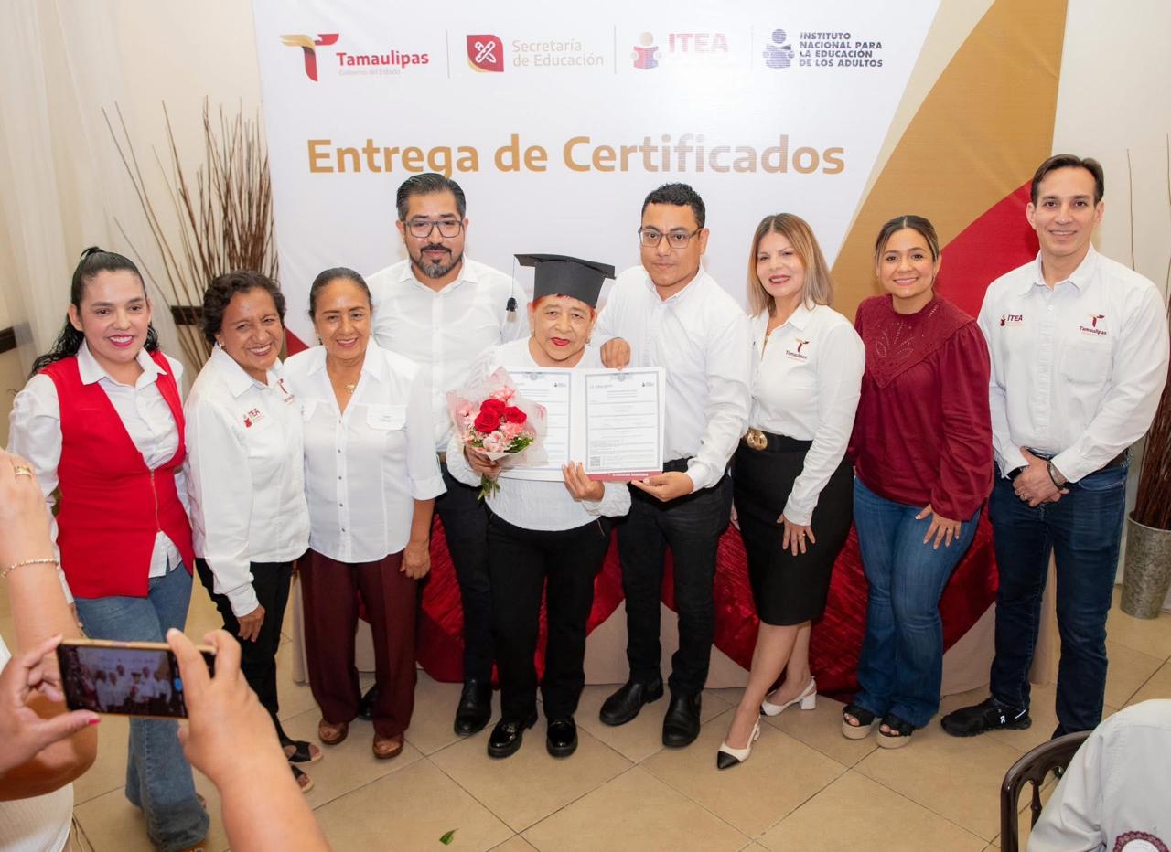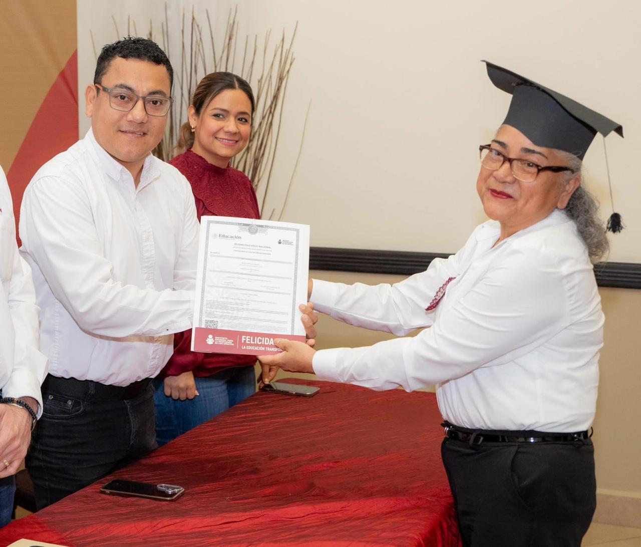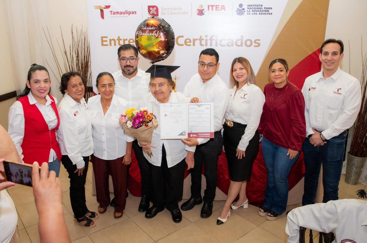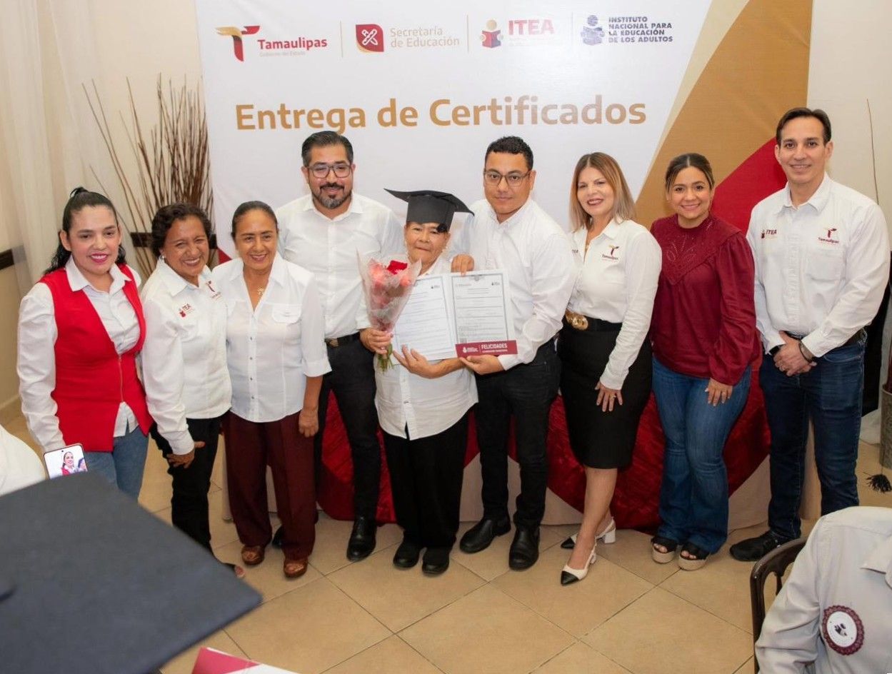 Altamira, Tamaulipas. – Este 5 de noviembre se hizo entrega de 7 certificados de educación primaria y 4 secundaria, con la suma de voluntades del DIF Municipal y del mercado Soriana Altamira, al permitir que abuelitos empacadores voluntarios cumplieran el sueño de certificar su educación básica gratis, animándolos con atención educativa por parte del Instituto.