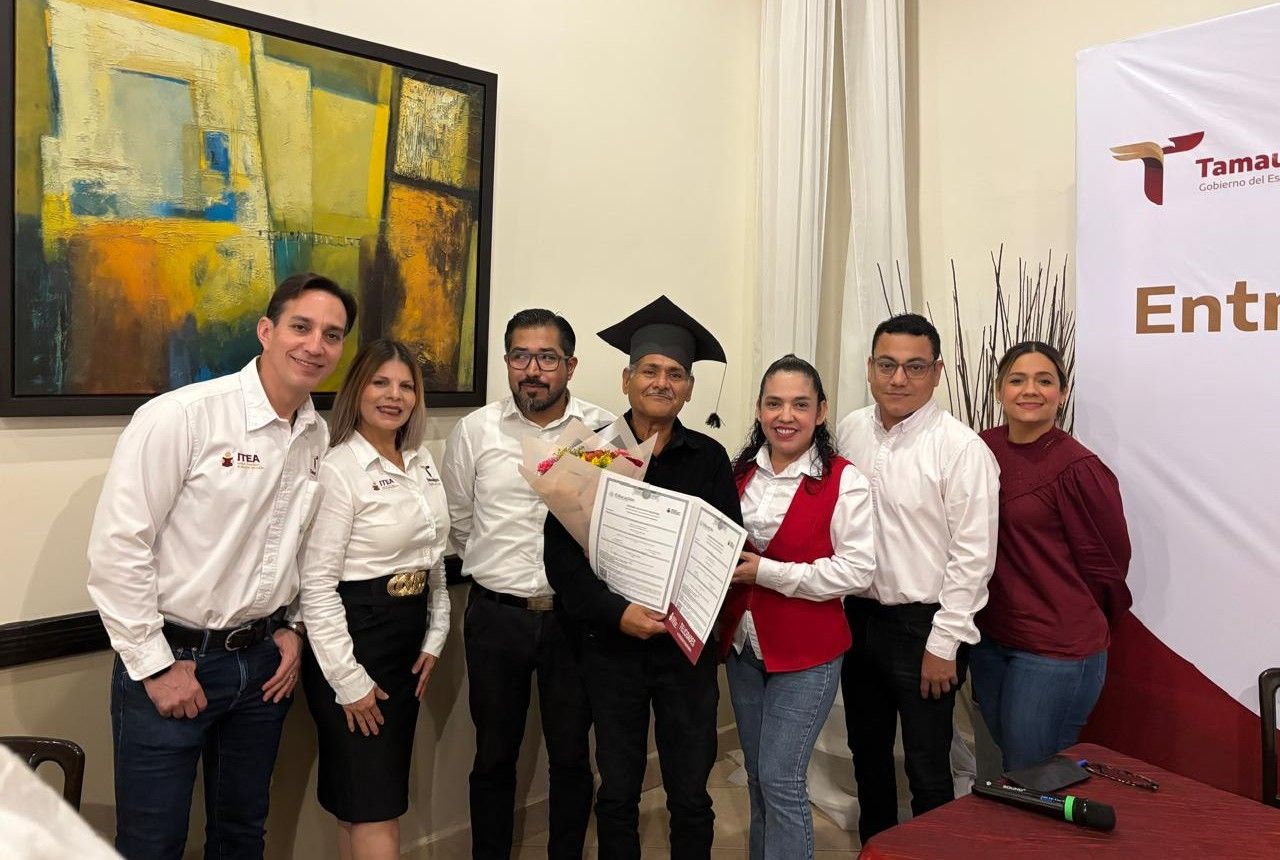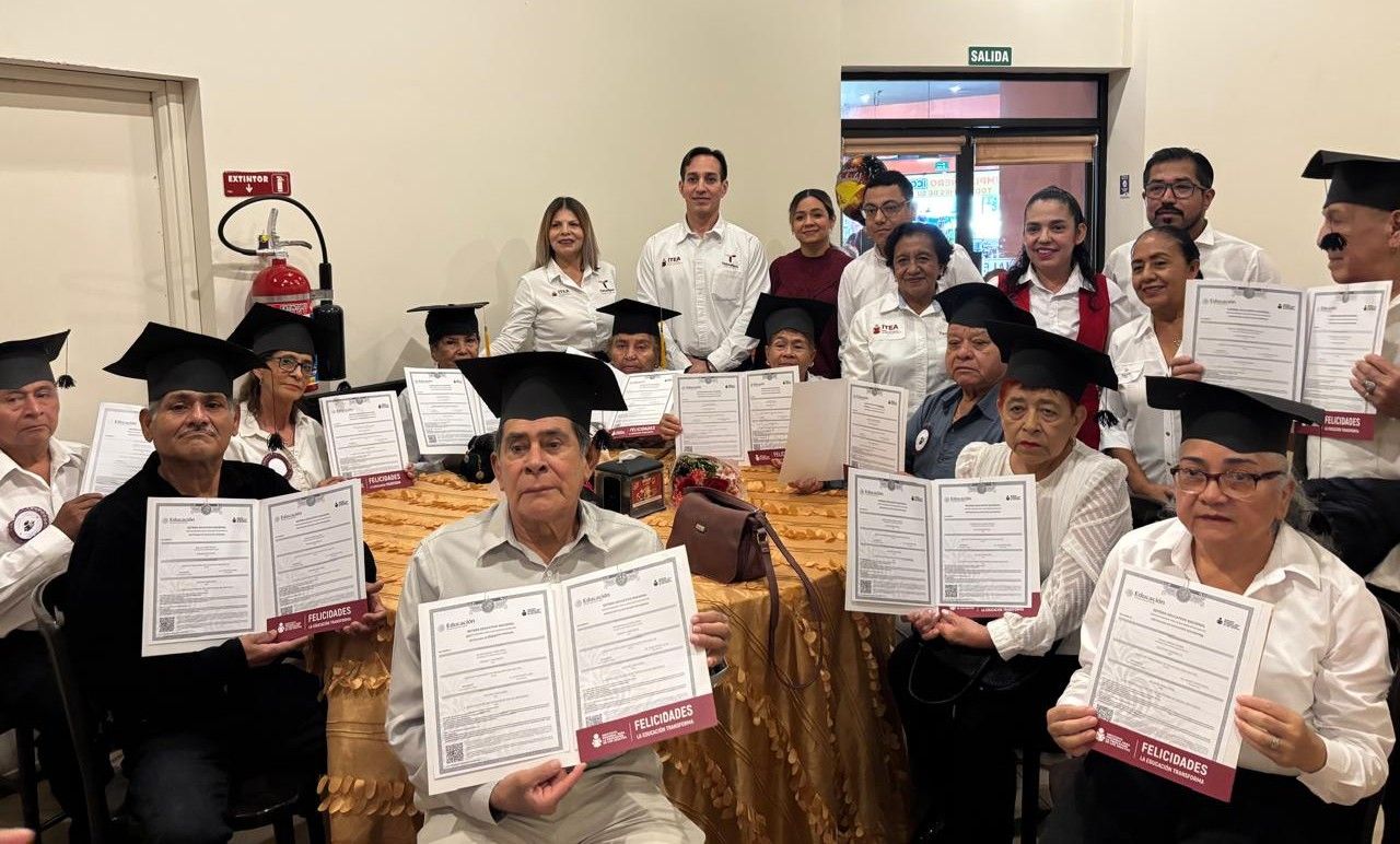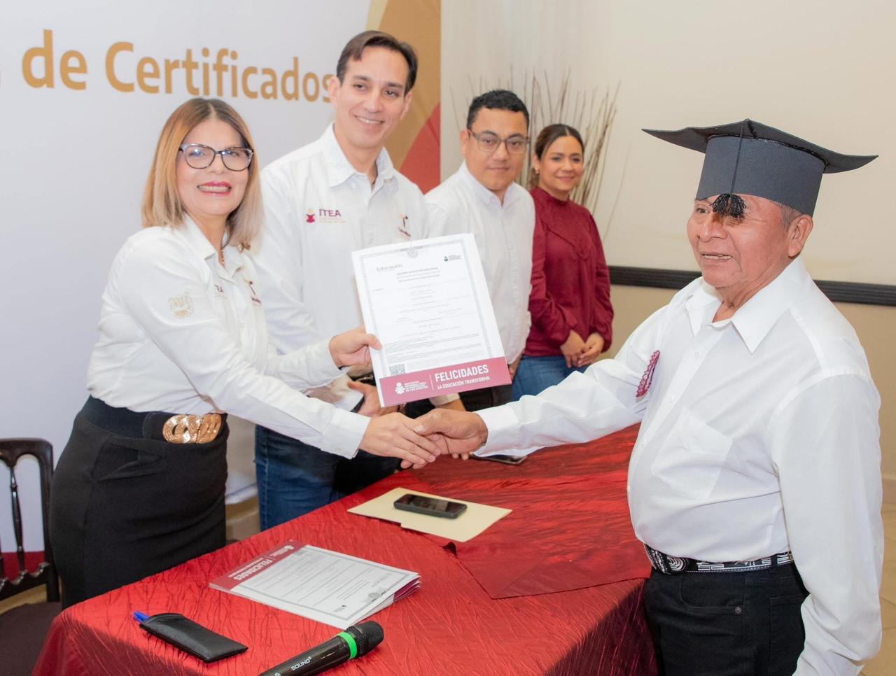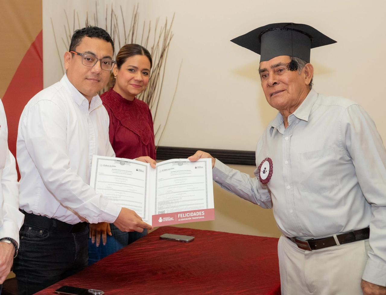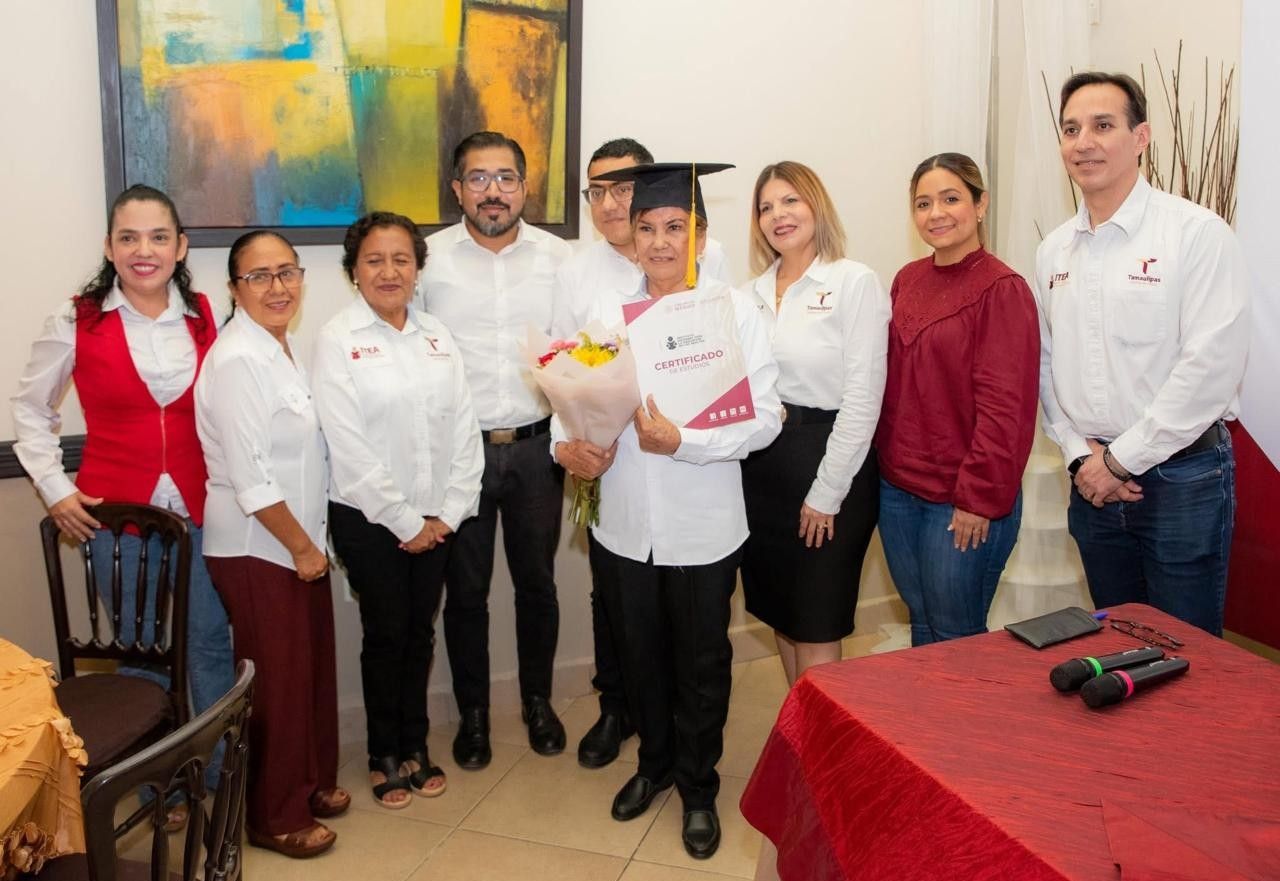 Altamira, Tamaulipas. – Este 5 de noviembre se hizo entrega de 7 certificados de educación primaria y 4 secundaria, con la suma de voluntades del DIF Municipal y del mercado Soriana Altamira, al permitir que abuelitos empacadores voluntarios cumplieran el sueño de certificar su educación básica gratis, animándolos con atención educativa por parte del Instituto.