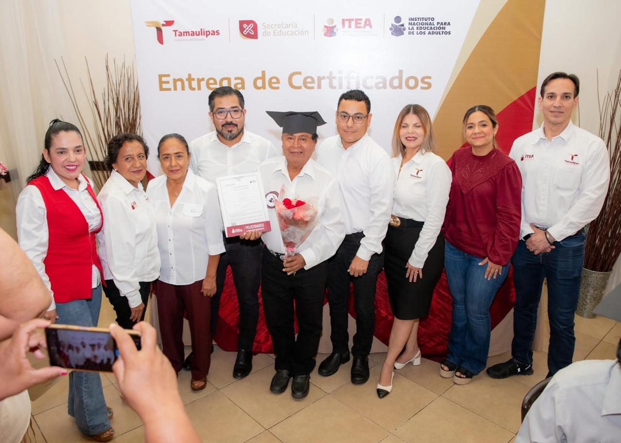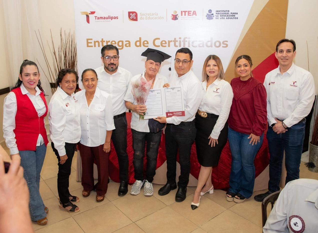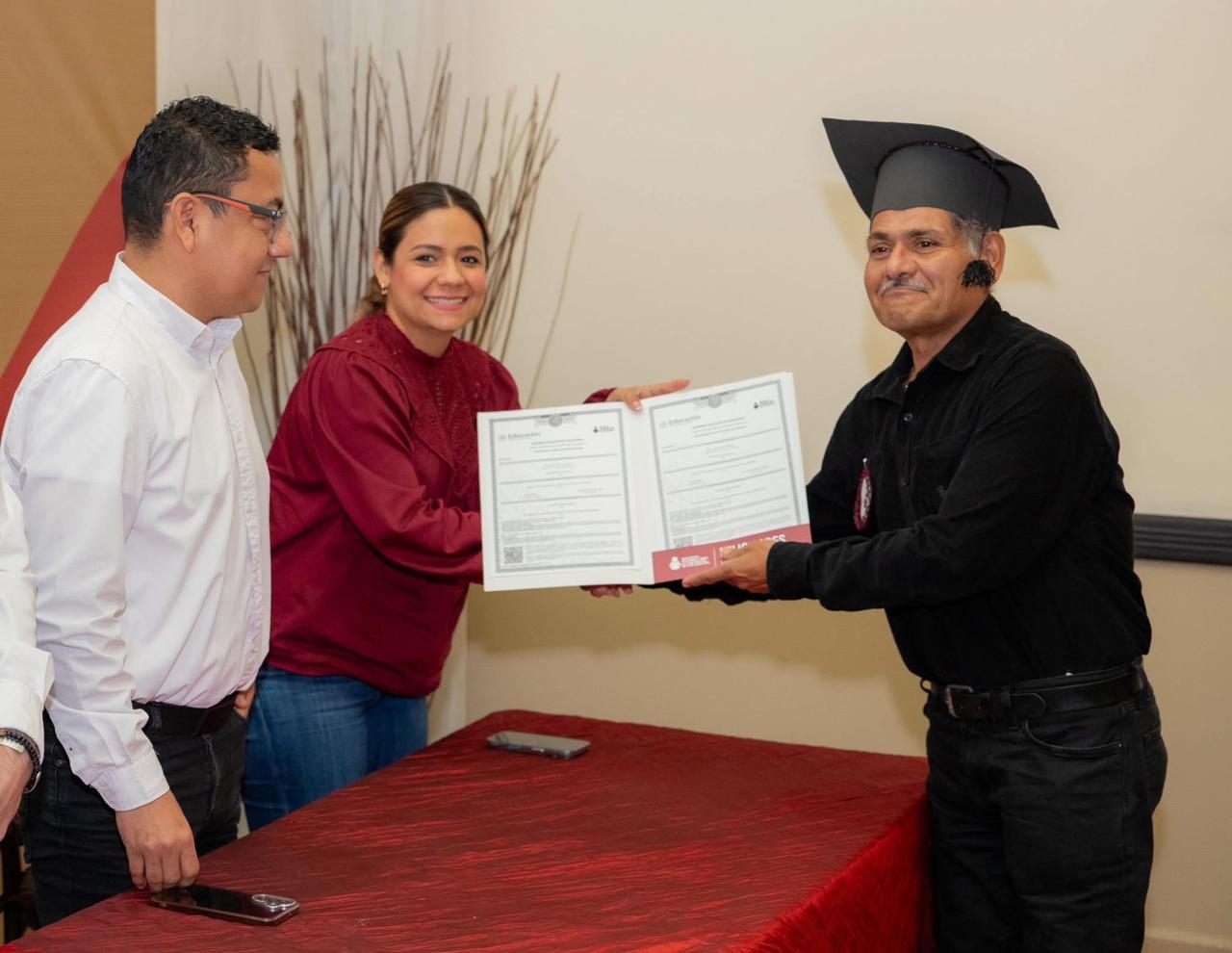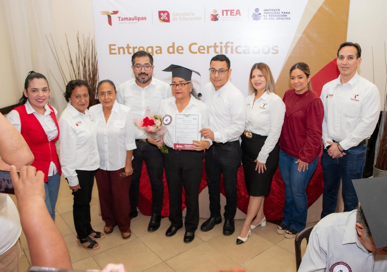 Altamira, Tamaulipas. – Este 5 de noviembre se hizo entrega de 7 certificados de educación primaria y 4 secundaria, con la suma de voluntades del DIF Municipal y del mercado Soriana Altamira, al permitir que abuelitos empacadores voluntarios cumplieran el sueño de certificar su educación básica gratis, animándolos con atención educativa por parte del Instituto.