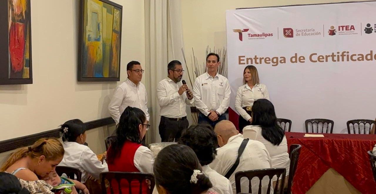 “Quiero agradecer a nombre de la directora general del ITEA, que estamos muy contentos porque concluyeron con éxito su educación básica y que sepan que este logro es por la suma de voluntades, por parte del Gobierno del Estado y la Secretaría de Educación, porque pueden seguir estudiando su educación preparatoria y gracias al apoyo de sus jefes como lo es esta empresa de prestigio y al DIF Municipal de Altamira por hacer posible que hoy al recibir su certificado cumplan sus sueños”.