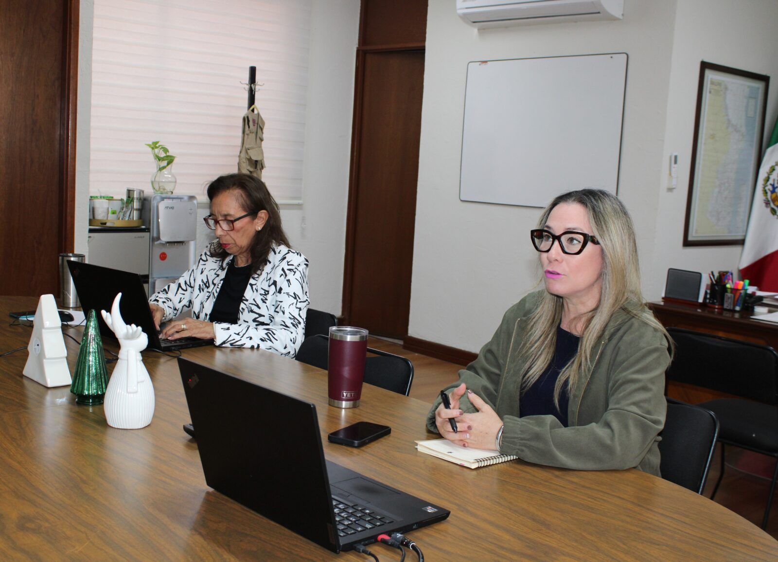 Vía remota la directora general del ITEA, Gloria Guadalupe González González, acompañada por la coordinadora de enlace, María del Rosario Hernández Montelongo.
