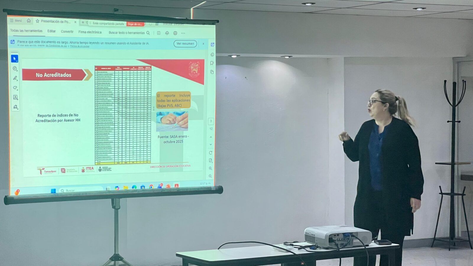 Tampico, Tamaulipas. – Este 11 de noviembre en las instalaciones de la Universidad Pedagógica Nacional, la directora general del ITEA, Gloria Guadalupe González González, realizó reunión operativa con el personal de la coordinación de zona Tampico, con la finalidad de presentar resultados de balance, así como estrategias que beneficien a la educación de las personas jóvenes y adultas sin educación básica, así como la importancia de los roles que realiza cada figura operativa y la importancia de la formación a PVS y personal.