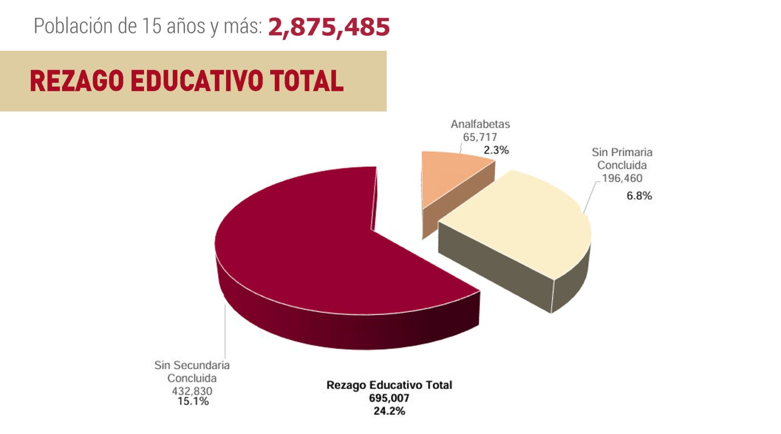 Fuente: * Información estimada con base en el Censo de Población y vivienda 2020, INEGI; Proyecciones de Población 2020-2070, CONAPO; Estadística del Sistema de indicadores educativos (septiembre 2024), SEP; logros del INEA.